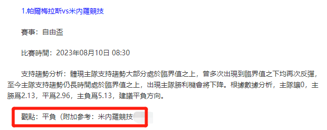 【解鎖內容為以上賽事支持趨勢預測圖展示,以及根據分析預測圖進行相對低機率方向觀點判斷。解鎖內容僅代表個人知識領域觀點,與本網站無關】