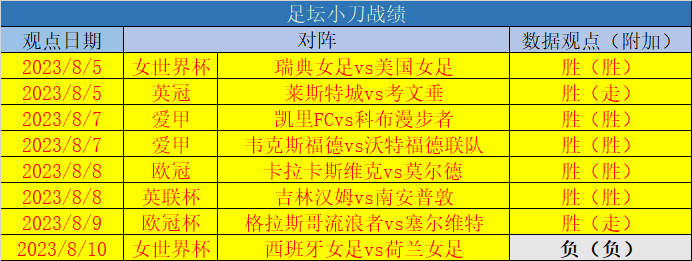 奥利给!小刀创下8胜7佳绩!今天要强势冲击更高胜率!刚结束的女足世界杯有点可惜!近期胜率也是高达87.5%!今天继续全力出击,敬请关注!