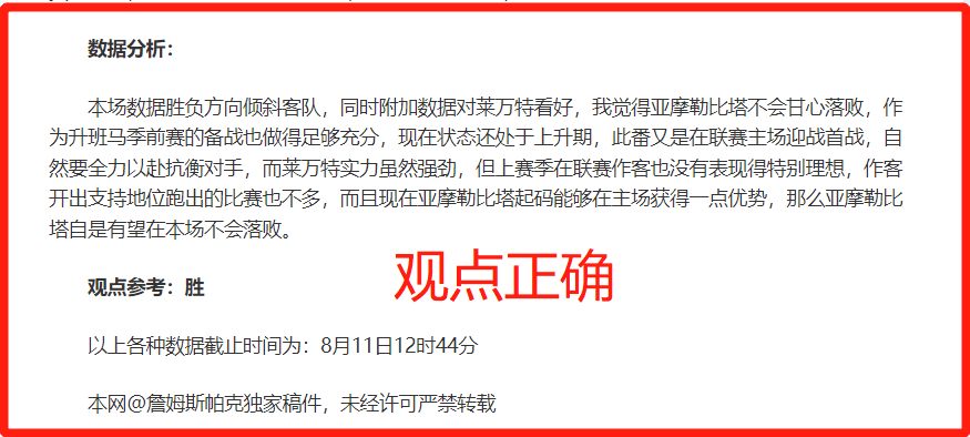 3、观点建议没有局限性,胜负以及进球均以大方向和胜率为主。