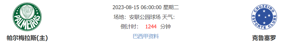 1、2023赛季巴西足球甲级联赛第19轮打响,帕尔梅拉斯主场迎战克鲁塞罗。巴西甲联赛共20支球队,以主客场双循环作赛,联赛前6名参加下赛季自由杯,7-12名参加南球杯,后4名直接降级。帕尔梅拉斯是巴西甲班霸,上赛季的联赛冠军,本赛季迄今球队表现也依旧稳定,上轮联赛客场1-2不敌弗鲁米嫩塞,结束了此前联赛2连胜,目前8胜7平3负积31分排名巴西甲第2位,不过落后榜首的博塔弗戈16分之多。