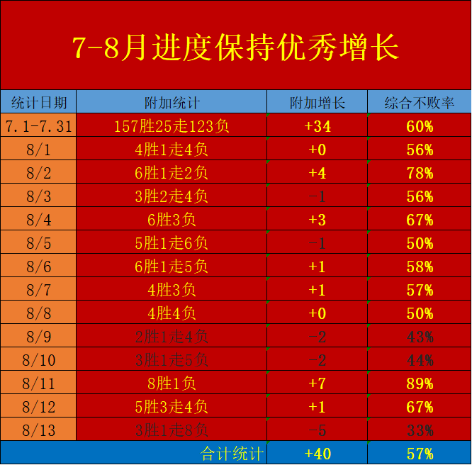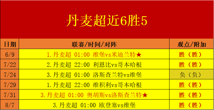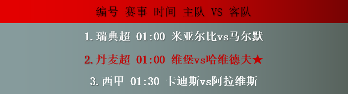 昨日收官战赛事受到阶段性的阻击无法取得突破,但整体7-8月赛程仍处于大方向的优势上升区间,双月进度216胜38走176负的正+40优秀增长!而得到周五精彩发挥的支持,上周整体进度也依然保持在了稳定的前进通道之中,本日中坚的欧洲赛事精选丹麦超领衔+瑞典超和西甲赛事组合出击,争取以蕞快的速度进行赛事板块的收复!