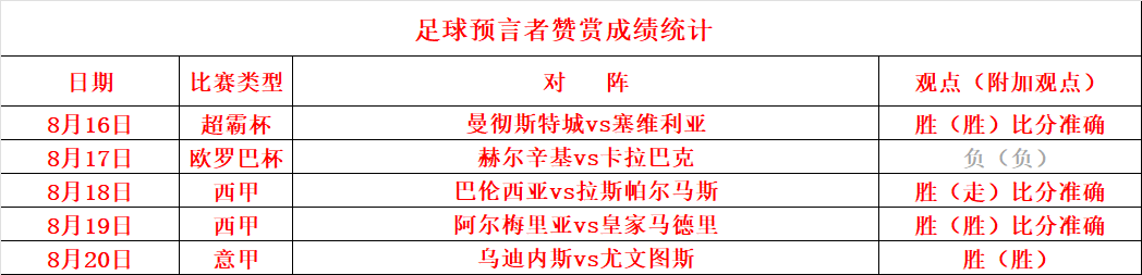 1、3连胜,5胜4,观点迎来一波3连胜!昨天私推送上意甲首轮比赛,继续稳定的拿下胜利,整体成绩29失8!在这里更感谢某些粉丝,不但选择包周业务,而且更是选择数周业务,这在里再次感谢!还长期稳定的发挥才是大家想要的结果,希望大家可以继续支持,不想错过的可能选择包周更加合适。