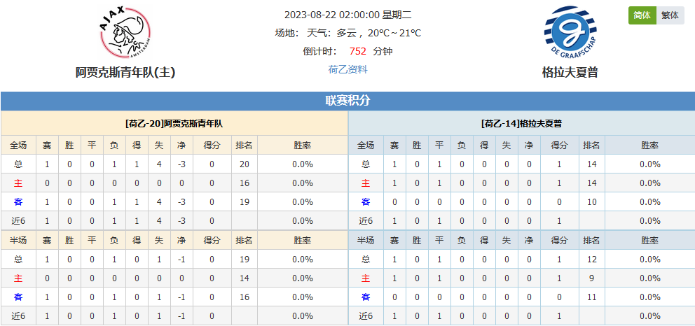 北京时间08月22日02:00,2023-2024 荷兰乙组联赛,阿贾克斯青年队vs格拉夫夏普,阿贾克斯青年队作为传统荷乙球队,近期表现有所下滑,而格拉夫夏普作为降班马,新赛季开局也没能取得首胜,今天比赛两队相遇哪一队更胜一筹?