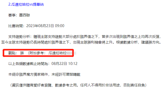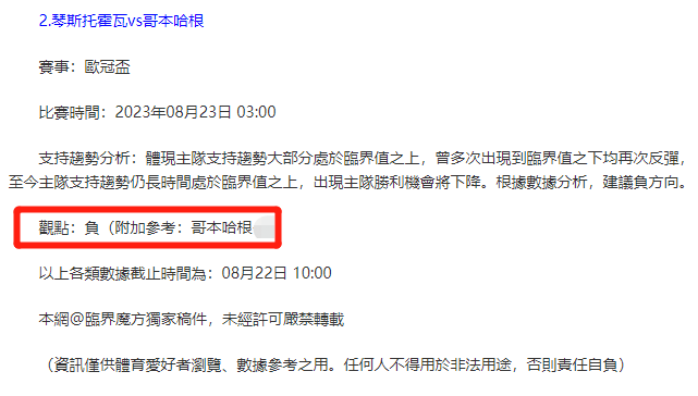 【解鎖內容為以上賽事支持趨勢預測圖展示,以及根據分析預測圖進行相對低機率方向觀點判斷。解鎖內容僅代表個人知識領域觀點,與本網站無關】