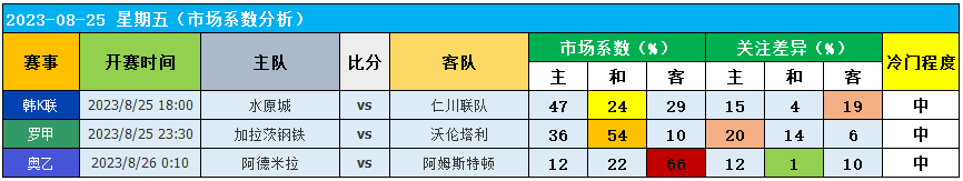 注:市场数据与关注差异均有出现深色标记的选项为大概率出现冷门!