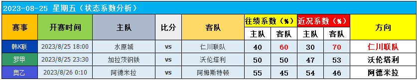 通过对两队的历史成绩、交手成绩及升降级等得出往绩系数;而近况系数则是通过近期(10场左右)成绩分析通过公式计算得出近况系数。