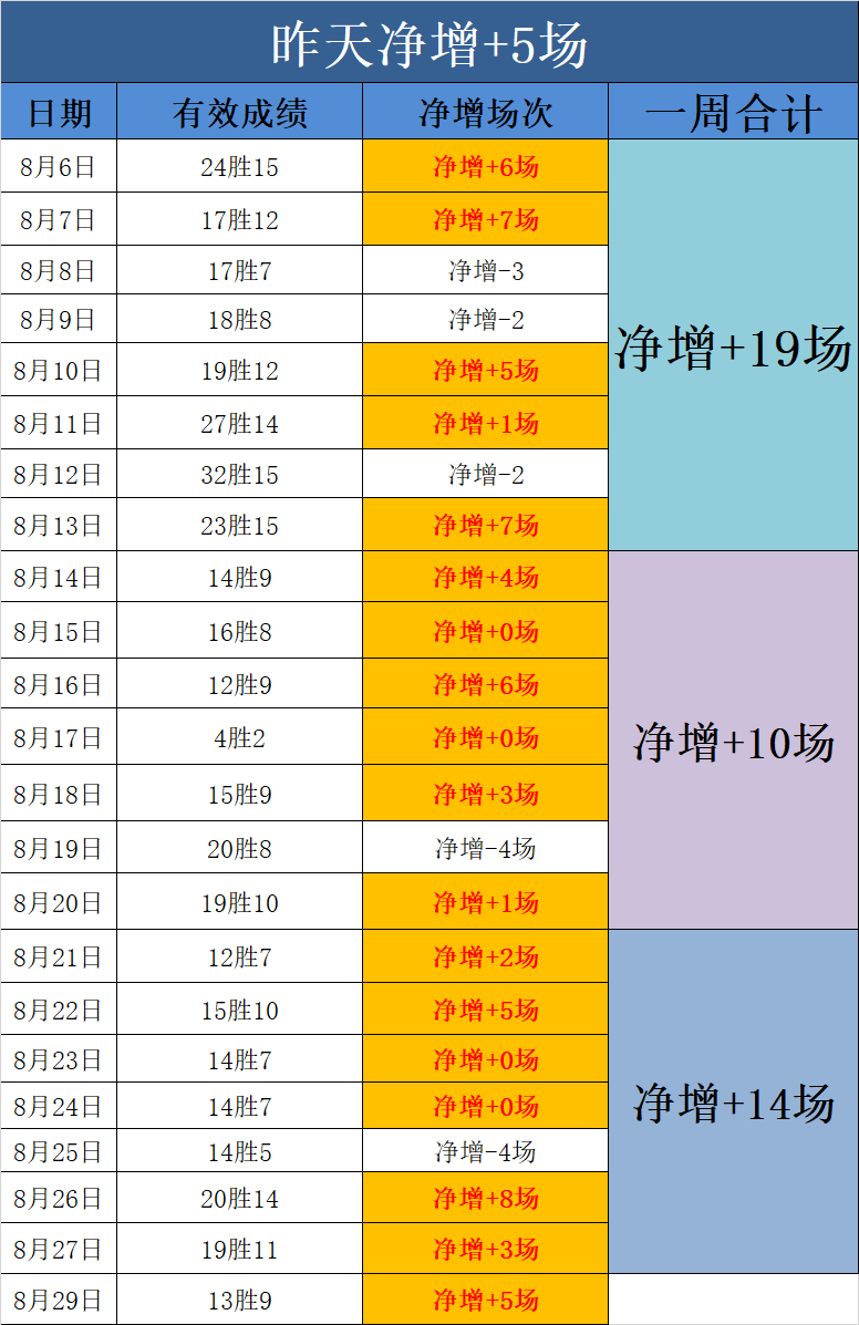 精彩分享:昨天新的一周,又是狂胜的开始,昨天观点合计14胜10,有效净增+5场,新的一周就已经狂胜了,今天周二,继续冲刺净增目标。