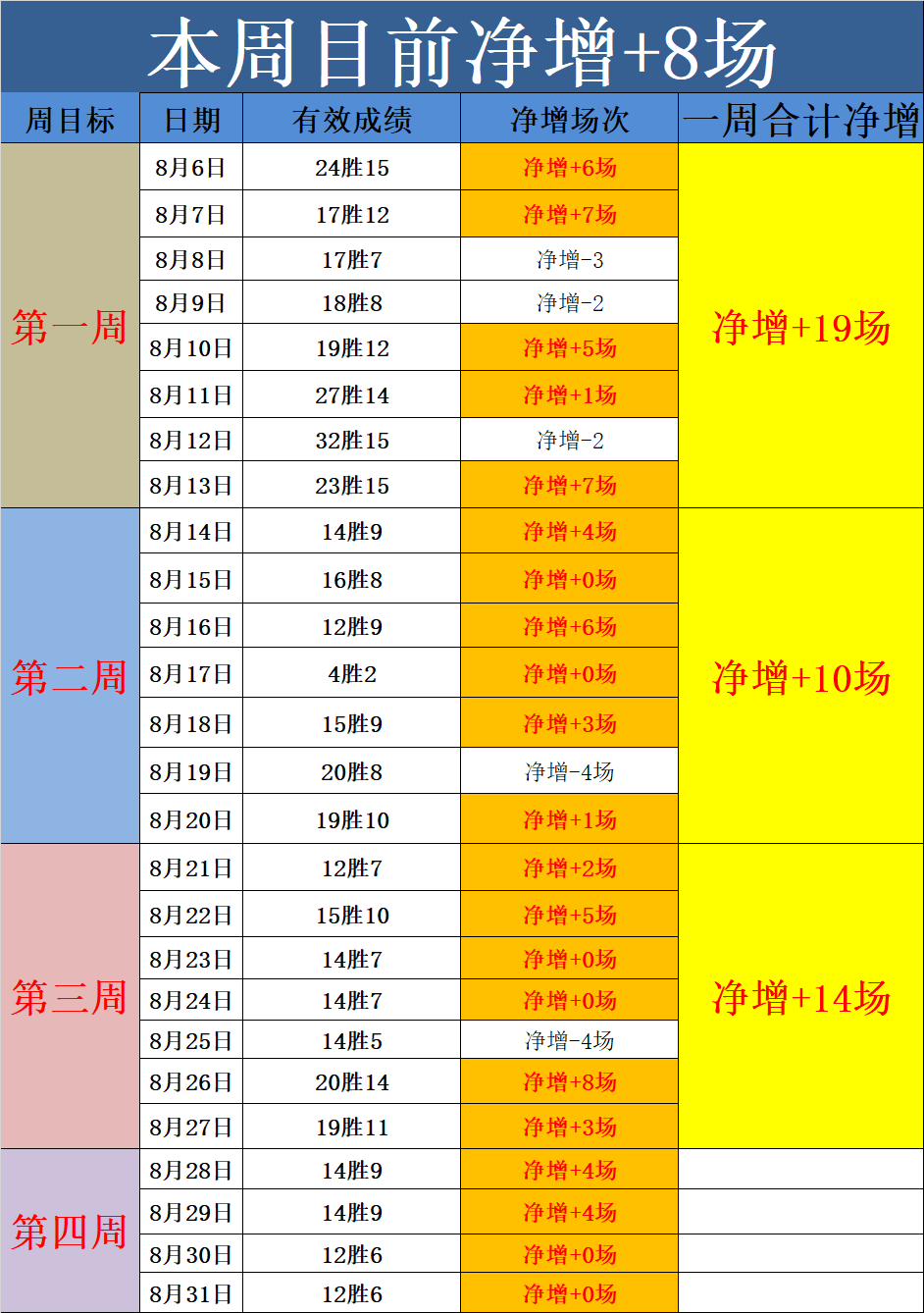精彩分享:昨天继续保持稳定,13场比赛只失6场,已经连续狂多天了,本场截止昨天净增+8场,今天周五,继续冲刺净增目标。