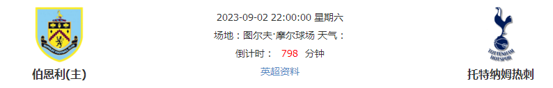 北京时间2023年9月2日22:00,2023-2024 英格兰超级联赛,伯恩利vs托特纳姆热刺,此役是英超新赛季第4轮的较量,伯恩利上轮联赛主场1-3不敌阿斯顿维拉,近两个主场连败,此役继续坐镇主场图尔夫?摩尔球场迎战托特纳姆热刺,两队如何对峙?下面由本作者为大家做详细阐述。