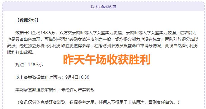 近收获6胜4成绩,昨天中女锦收获胜利,此前基斯迪独立分析篮世杯多日收获连胜战绩!再次深入了解精彩比赛,基斯迪篮球独立分析给到大家非同凡响的感觉,延续胜利轨道继续深入探讨,资深独特分析胜利前进步伐从未停止,连胜指日可待!资深篮球爱好者,用独立分析早场赛事再为大家奉上。以下再为大家分享一场精彩赛事,敬请期待!