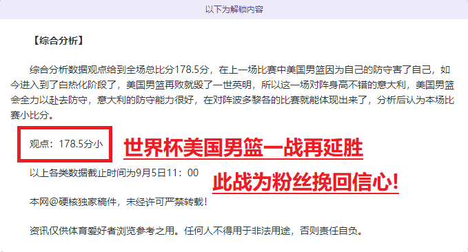 作者近两次十一连胜和一次九连胜彰显了实力,在七月份和八月份也是多次带领众粉丝取得不少连胜的成绩,在篮球分析领域作者也是颇有一番心得受到粉丝支持与信赖,在上期三战赛事世界杯取得一胜一负,WNBA无奈剧本卡0.5,近期取得5胜3的成绩,作者强势回归收复失地继续带领粉丝吃香喝辣,接下了会延续状态,致力打造篮球领域第一人!