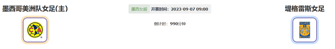 北京时间09月07日09:00,墨西联女超春季联赛2023,墨西哥美洲女足vs堤格雷斯女足,双方在不久前分别进行了两场热身性质的友谊赛,经历了数日休整之后谁能拿下本场比赛的赛点?让我们拭目以待!
