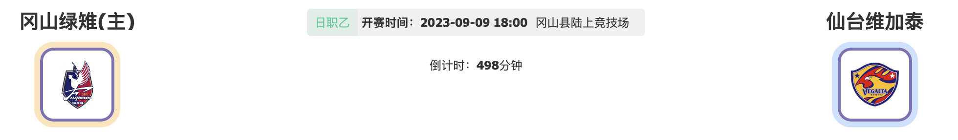 北京时间9月9日晚18:00,日职乙第34轮的比赛将会继续展开,冈山绿雉对队将会在主场迎来仙台维加泰队的挑战,球队能否主场顺利拿下3分呢?