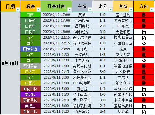 昨天数据表现不错,整体18胜10!昨天数据中,早场的表现出色,整体4胜3,其中日丙的表现尤为出色,主队完美的拿下数据,非常的精彩!而日联杯也没有让人失望,3场有2场顺利打出,非常的给力!晚场的表现一般,其中西乙的表现差强人意,不过整体还是比较符合预期的!而友谊赛的表现则是比较完美,进球数顺利打出!夜场的表现不错,其中巴西乙的表现非常的出色,2场都完美的大获全胜拿下,非常的精彩!不过哥伦甲和美职都未能打出比较完美的结果,有点可惜!