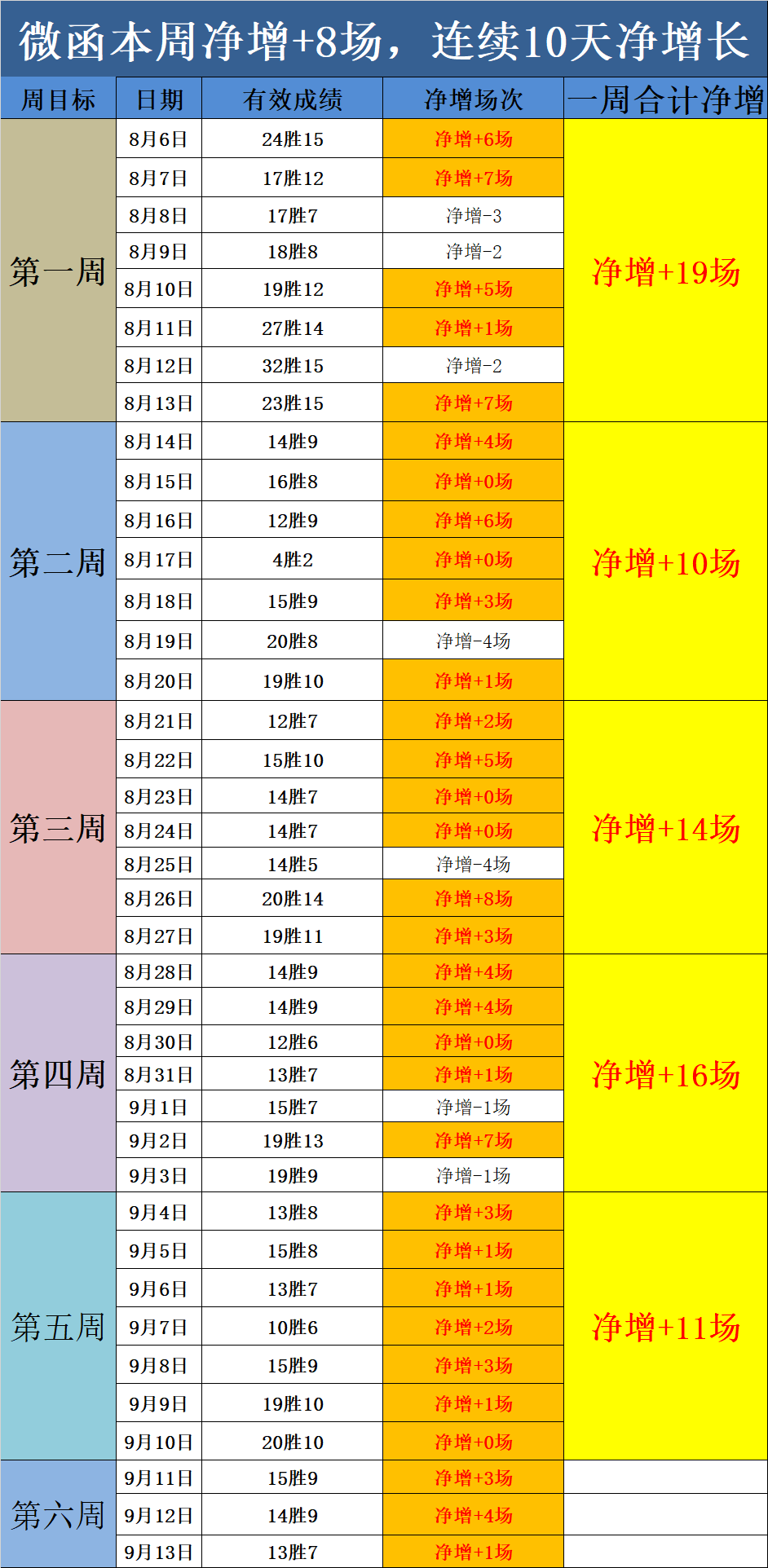 一、目标是以净增长为计划方向,净增长统计为有效胜负,打平视为无效,但可计入不败率。