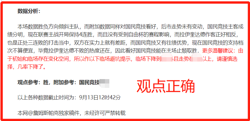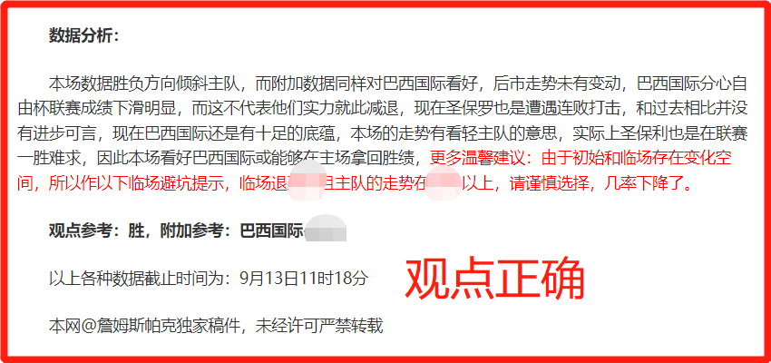 3、观点建议没有局限性,胜负以及进球均以大方向和胜率为主。