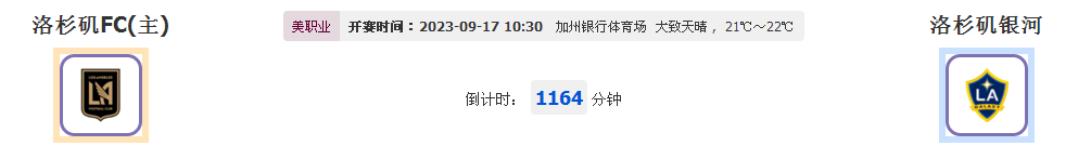 北京时间2023年9月17日10:30,2023 美国职业大联盟联赛,洛杉矶FCvs洛杉矶银河,此役是美职业第29轮的较量,主队洛杉矶FC上轮联赛客场0-2不敌波特兰伐木者,联赛近3轮连败,此役坐镇主场加州垠行体育场迎战洛杉矶银河,两队如何对峙?下面由本作者为大家做详细阐述。