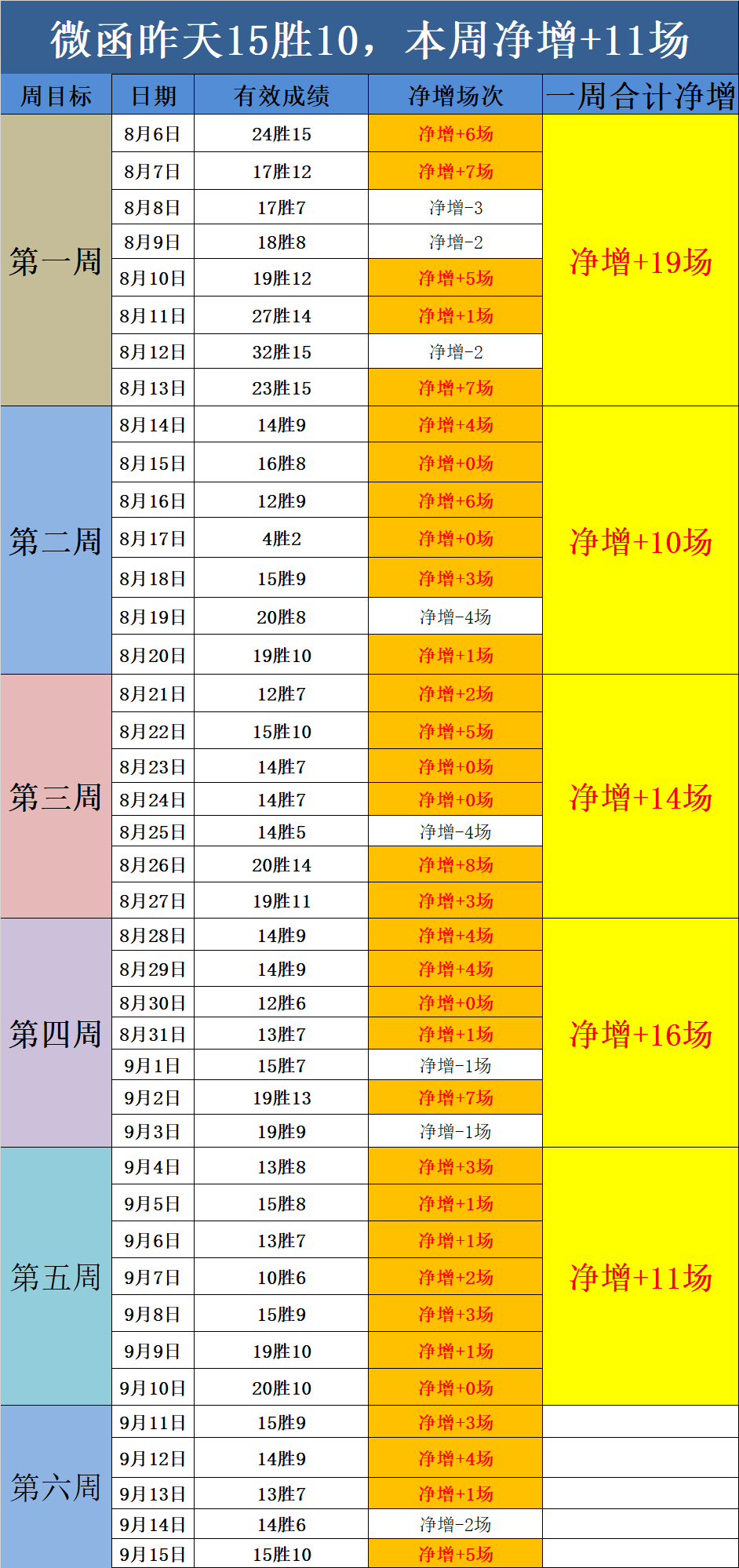 一、目标是以净增长为计划方向,净增长统计为有效胜负,打平视为无效,但可计入不败率。