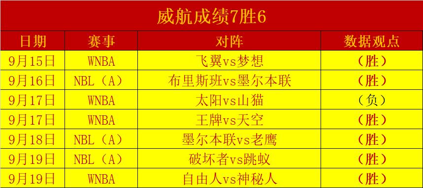 昨日分享的2场赛事都取得了胜利,NBL(A)跳蚁顺利战胜了破坏者,而神秘人则在客场打出精彩的表现,本人近期成绩7胜6且4连胜。以下为大家分享一场NBL(A)赛事伊拉瓦拉老鹰vs布里斯班,敬请期待!