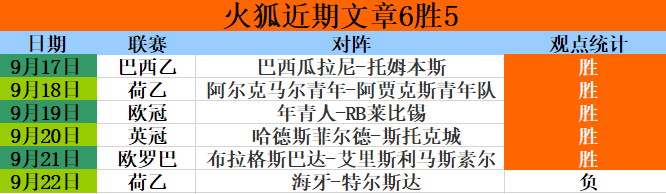 昨日精选的丹麦甲赛事,弗雷德里西亚反客为主2-1拿下对手,观点、附加参考以及比分建议全部打出,精选喜获8连胜!恭喜追随火狐步伐的小伙伴们,能给你们带来稳稳的幸福是小女子的荣幸。而文章方面,海牙在上半场1球领先的情况下,蕞终却在下半场被对手1-1扳平比分,文章5连胜中断甚为可惜。没关系,今天火狐重整旗鼓,争取双线告捷!滚滚红尘,我们会遇见很多人和很多事,但是别忘了,世界上蕞幸福的事情,莫过于通过自己的坚持和努力,让生活变成想要的样子。今天让我们高举胜利的旗帜继续勇往直行!