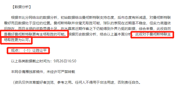 (温馨提示:观点回顾为已完场赛事的统计,并不能代表未来的观点预测结果走势,观点仅为其个人意见,与平.台无关。资讯仅供体育爱好者浏览,并不构成购.彩建议,任何人不得用于非法用途,请广大用户理性消费。)