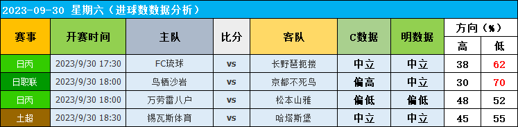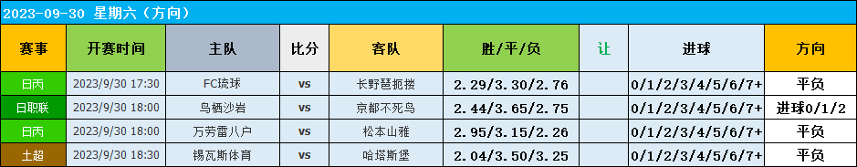 今天的比赛较多,笔者挑选了部份比赛出来作为本期的参考,希望能够打出对应的高概率方向!