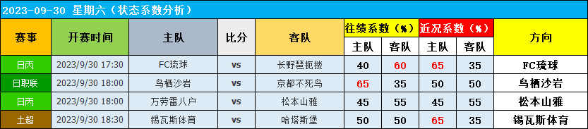 通过对两队的历史成绩、交手成绩及升降级等得出往绩系数;而近况系数则是通过近期(10场左右)成绩分析通过公式计算得出近况系数。