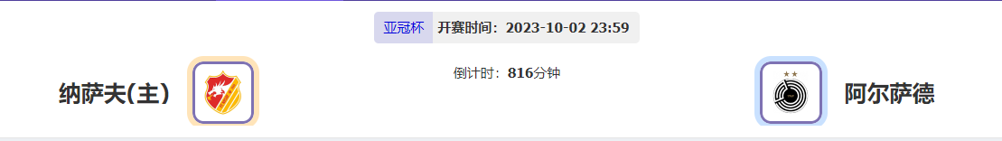 北京时间2023年10月02日 23时59分,亚冠小组赛B组第2轮的赛事,此次小组赛将进行6轮主客场循环赛制,纳萨夫暂时位居小组榜首,此役主场迎战阿尔萨德能否延续势头?让我们一起期待!