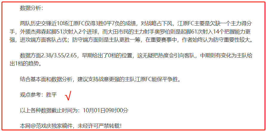 (温馨提示:观点回顾为已完场赛事的统计,并不能代表未来的观点预测结果走势,观点仅为其个人意见,与本.网无关。资讯仅供体育爱好者浏览,并不构成购.彩建议,任何人不得用于非法用途,请广大用户理性消费。)