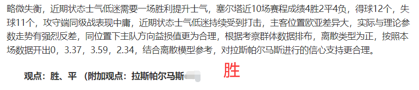 (温馨提示:观点回顾为已完场赛事的统计,并不能代表未来的观点预测结果走势,观点仅为其个人意见,与本网无关。资讯仅供体育爱好者浏览,并不构成购入建议,任何人不得用于非法用途,请广大用户理性消费。)