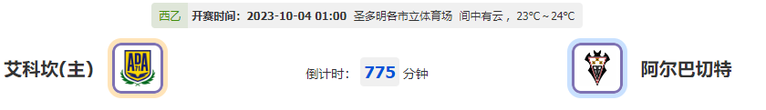 北京时间10月4日01:00,西乙第9轮赛事艾科坎vs阿尔巴切特,艾科坎当下的状态减退不少,他们能否在此役捍卫主场重新出击?阿尔巴切特境况艰难上升,如今取胜底气显得不足,此番挑战是否已做好准备?