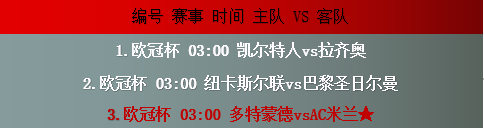 昨日完成的9场比赛进度稍微受阻,取得当中的4场胜利观点方向,其中处于优势增长区间的欧冠杯赛程两战与胜利观点擦肩而过颇为可惜,目前欧冠杯的近2个月进程为观点32胜21,优质观点正+10,本日欧洲赛事板块继续精选欧冠杯赛程组合出击,争取携手优势板块对成绩进行修复扩展!