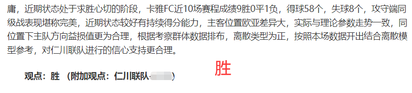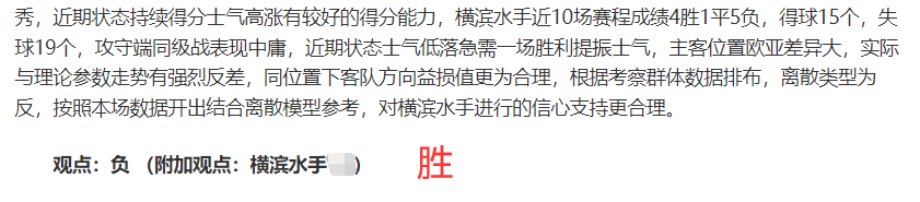 (温馨提示:观点回顾为已完场赛事的统计,并不能代表未来的观点预测结果走势,观点仅为其个人意见,与本网无关。资讯仅供体育爱好者浏览,并不构成购入建议,任何人不得用于非法用途,请广大用户理性消费。)