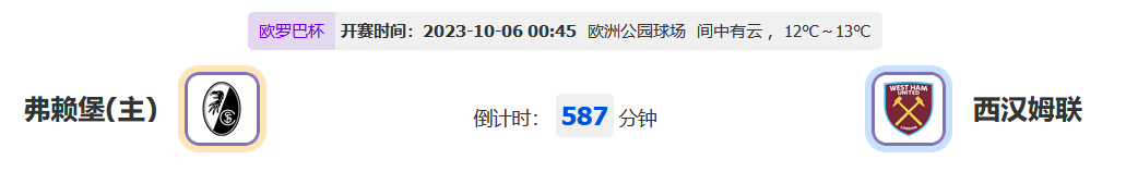 北京时间10月06日00时45分,欧罗巴杯2023-2024小组赛A组第二轮比赛,弗赖堡vs西汉姆联,双方在小组赛首场比赛均收获胜利,目前是小组两支前列的胜者队伍,此番对决是一场实力相当的拉扯还是各自试探的闷平?让我们一起拭目以待!