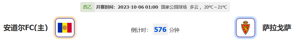 【往日回顾】昨天笔者为大家剖析了3场赛事,分别是亚冠杯曼谷联合队vs全北现代,亚运男足韩国U23vs乌兹别克U23和墨西联桑托斯拉古纳vs提华纳,其中韩国U23虽然取得胜利但赛前数据过于强势与正确观点擦肩而过颇为遗憾,而次日的墨西联提华纳在得到主队给与的较高支持下成功捍卫数据位置保持不败,近段赛程进度受到微弱阻击,为了快速回到此前得分的优势成绩并找到精准出击的赛程,今天带来一场西乙的比赛进行分析,安道尔FCvs萨拉戈萨,务求再创佳绩获得认可!