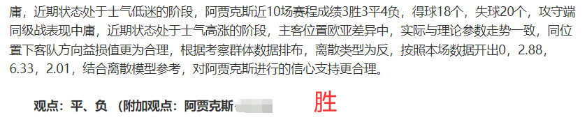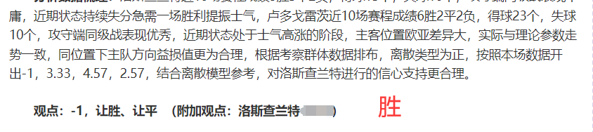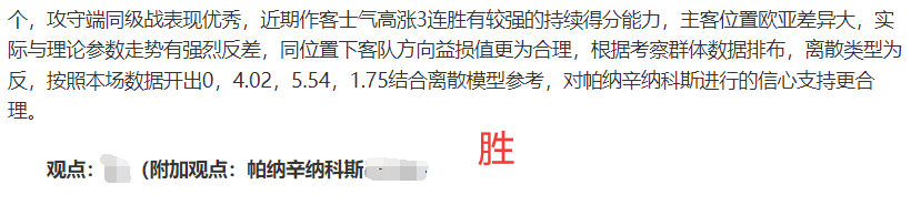 (温馨提示:观点回顾为已完场赛事的统计,并不能代表未来的观点预测结果走势,观点仅为其个人意见,与本网无关。资讯仅供体育爱好者浏览,并不构成购入建议,任何人不得用于非法用途,请广大用户理性消费。)