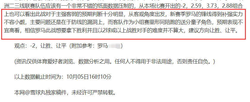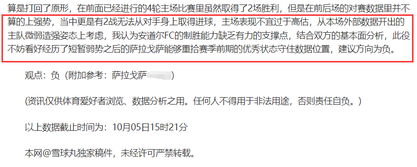 (温馨提示:观点回顾为已完场赛事的统计,并不能代表未来的观点预测结果走势,观点仅为其个人意见,与平.台无关。资讯仅供体育爱好者浏览,并不构成购.彩建议,任何人不得用于非法用途,请广大用户理性消费。)