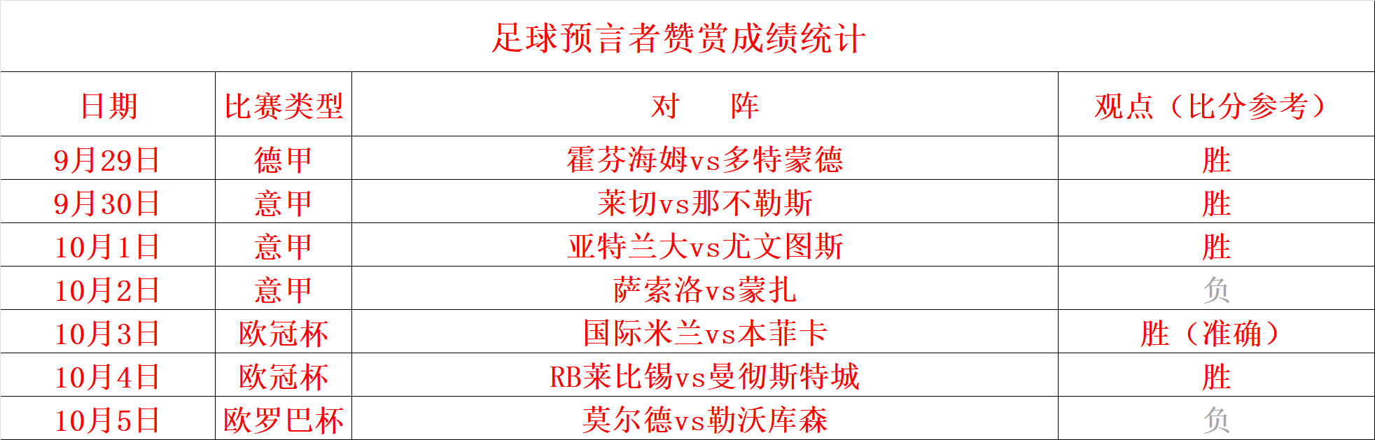 3、有小伙伴们建议笔者在送出比赛方向的同时,能否预测比赛结果,预测比赛结果是有相当的难度,往后的时间里如果是有信心的,笔者会附加上比赛结果,在这感谢大家一直以来的支持。