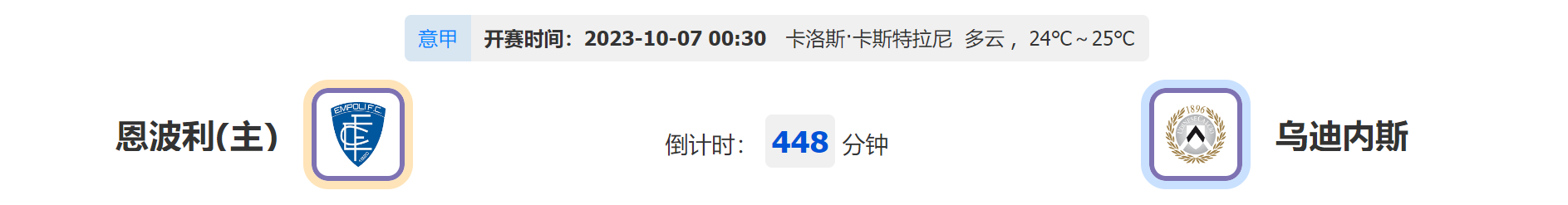 北京时间10月07日00:30,2023-2024 意大利甲组联赛,恩波利vs乌迪内斯,两队目前新赛季开局表现都不如人意,今天比赛两队再次相遇会有怎样表现?