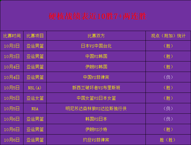 作者近两次十一连胜和一次九连胜彰显了实力,在七月份和八月份也是多次带领众粉丝取得不少连胜的成绩,在篮球分析领域作者也是颇有一番心得受到粉丝支持与信赖,在上期三战赛事再次取得两战胜利,近期拿下了10胜7+两连胜战绩,作者强势回归收复失地继续带领粉丝吃香喝辣,接下了会延续状态,致力打造篮球领域第一人!