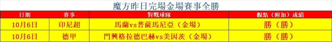 魔方昨天正值産出,完場賽事金場全勝,印尼超專場保持不敗!美賽進行中,已拿下其中一場。魔方對於週六、日數據捕捉較爲精準,接下來魔方將會不斷努力務求精益求精!今日對日韓賽事、五大聯賽以及美職業進行深研。