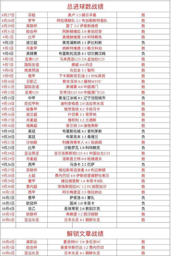周五解锁文章1场,日本女足 4:1 大胜朝鲜女足,我们日本女足方向轻松大胜,解锁文章稳稳3连胜!周五私推赞赏1场+总进球数1场+解锁文章1场,继续完美全胜拿下,很舒服!私推总进球数近38胜28,成绩不俗!私推赞赏近45胜30,状态稳定!今天解锁文章、赞赏、总进球数,三线全胜搞起来!鸡锅的私推多半都是小联赛,这些海外小联赛信息方向非常准确,经过近几年的耕耘,海外信息渠.道已经打通,到了丰收的时候了!起飞啦,老铁们!