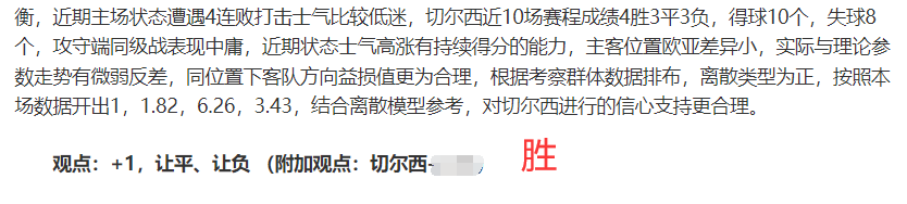 (温馨提示:观点回顾为已完场赛事的统计,并不能代表未来的观点预测结果走势,观点仅为其个人意见,与本网无关。资讯仅供体育爱好者浏览,并不构成购入建议,任何人不得用于非法用途,请广大用户理性消费。)