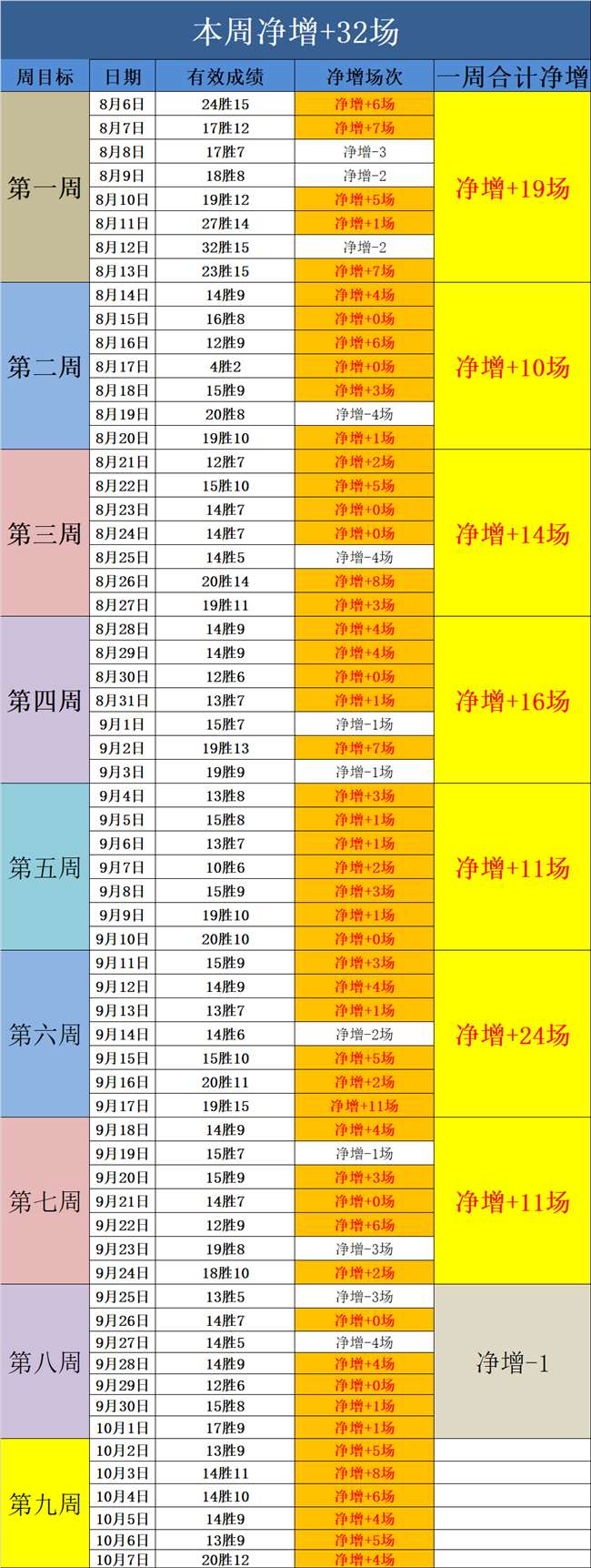 一、目标是以净增长为计划方向,净增长统计为有效胜负,打平视为无效,但可计入不败率。