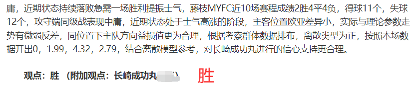 (温馨提示:观点回顾为已完场赛事的统计,并不能代表未来的观点预测结果走势,观点仅为其个人意见,与本网无关。资讯仅供体育爱好者浏览,并不构成购入建议,任何人不得用于非法用途,请广大用户理性消费。)