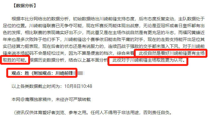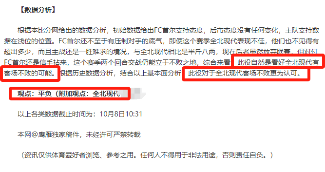 (温馨提示:观点回顾为已完场赛事的统计,并不能代表未来的观点预测结果走势,观点仅为其个人意见,与平.台无关。资讯仅供体育爱好者浏览,并不构成购.彩建议,任何人不得用于非法用途,请广大用户理性消费。)
