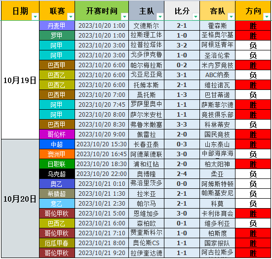 昨天数据表现不错,整体12胜6!昨天数据中,早场的表现不错,其中中超顺利打出,非常的不错!而澳洲甲和乌克超都未能打出,比较可惜!不过重点日职完美的打出,非常的精彩!晚场的表现不尽人意,不过哥伦甲的表现依旧是非常的耀眼,恩维加多完美的大获全胜拿下,非常的给力!夜场的表现不错,其中哥伦甲2场都顺利打出,非常的不错!!当然重点厄瓜甲同样是完美的打出,非常的精彩!