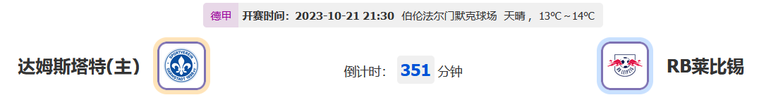 北京时间10月21日21时30分,德甲联赛2023-2024赛季第8轮比赛,达姆斯塔特vsRB莱比锡,主队作为赛季升班马暂时的得分进度可圈可点,近期赛程更是保持连胜状态持续走高,本场面对来势汹汹的传统劲旅RB莱比锡,球队的主场能否经得起考验?让我们一起拭目以待!