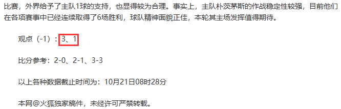 观点回顾为已完场赛事的统计,并不能代表未来的观点预测结果走势,观点仅为其个人意见,与平.台无关。资讯仅供体育爱好者浏览,并不构成购.彩建议,任何人不得用于非法用途,请广大用户理性消费。