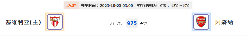 北京时间2023年10月25日03:00,2023-2024 欧洲联赛冠军杯赛,塞维利亚vs阿森纳,此役是欧冠杯分组赛B组第3轮的较量。塞维利亚上轮客场2-2战平埃因霍温,两轮皆平,此役坐镇主场皮斯胡安球场迎战阿森纳,两队将如何对峙?下面由本作者为大家做详细阐述。